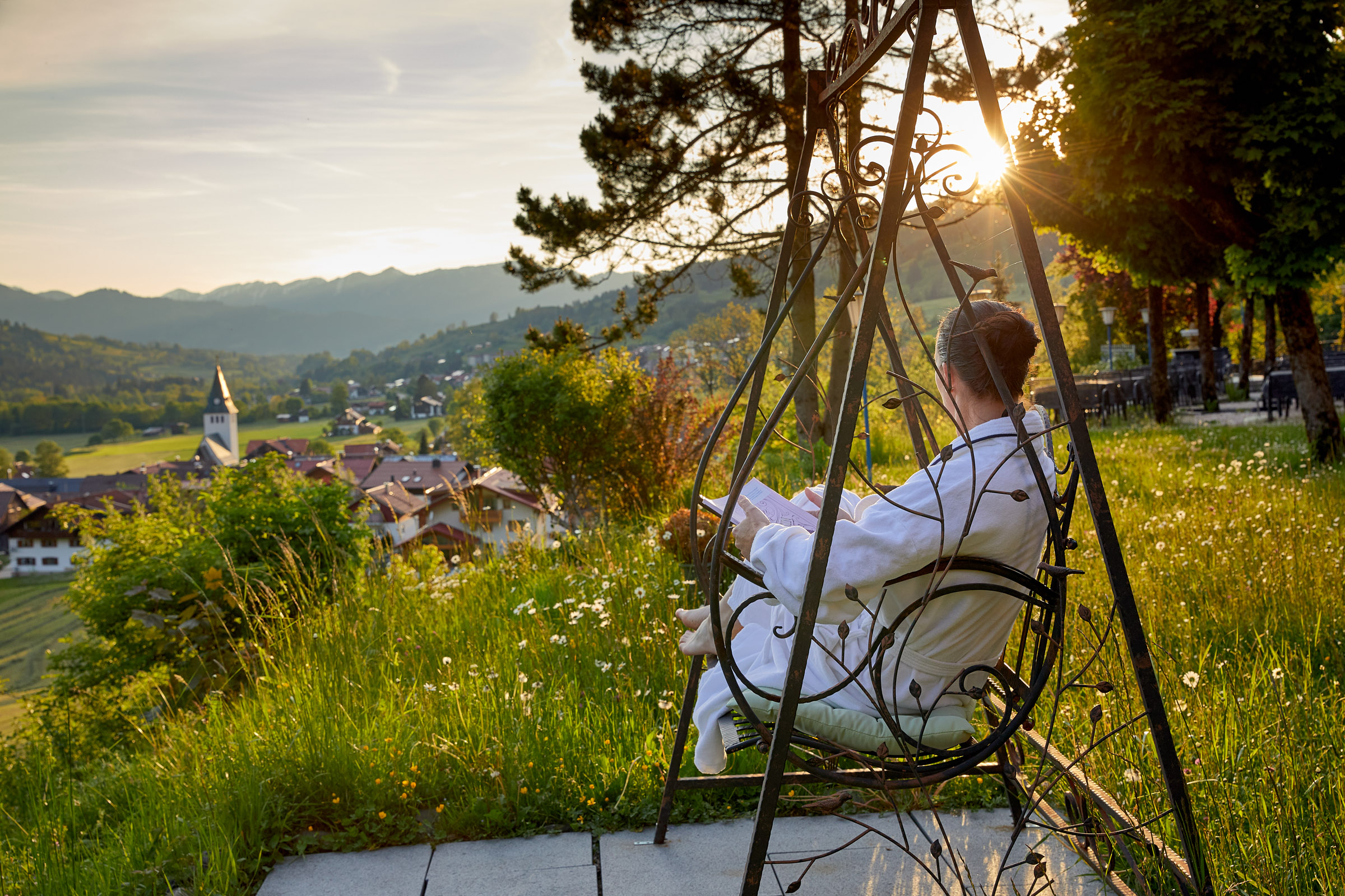 Angekommen im Hotel im idyllischen Bad Oberdorf, einem Ortsteil von Bad Hindelang, lohnt es sich, erst einmal inne zu halten. Sich auf eine der nostalgischen Schaukeln des Hotels zu setzen und die ganze Pracht und Schönheit der Natur ringsherum auf sich wirken zu lassen. Momente, wie sie perfekter nicht sein könnten.