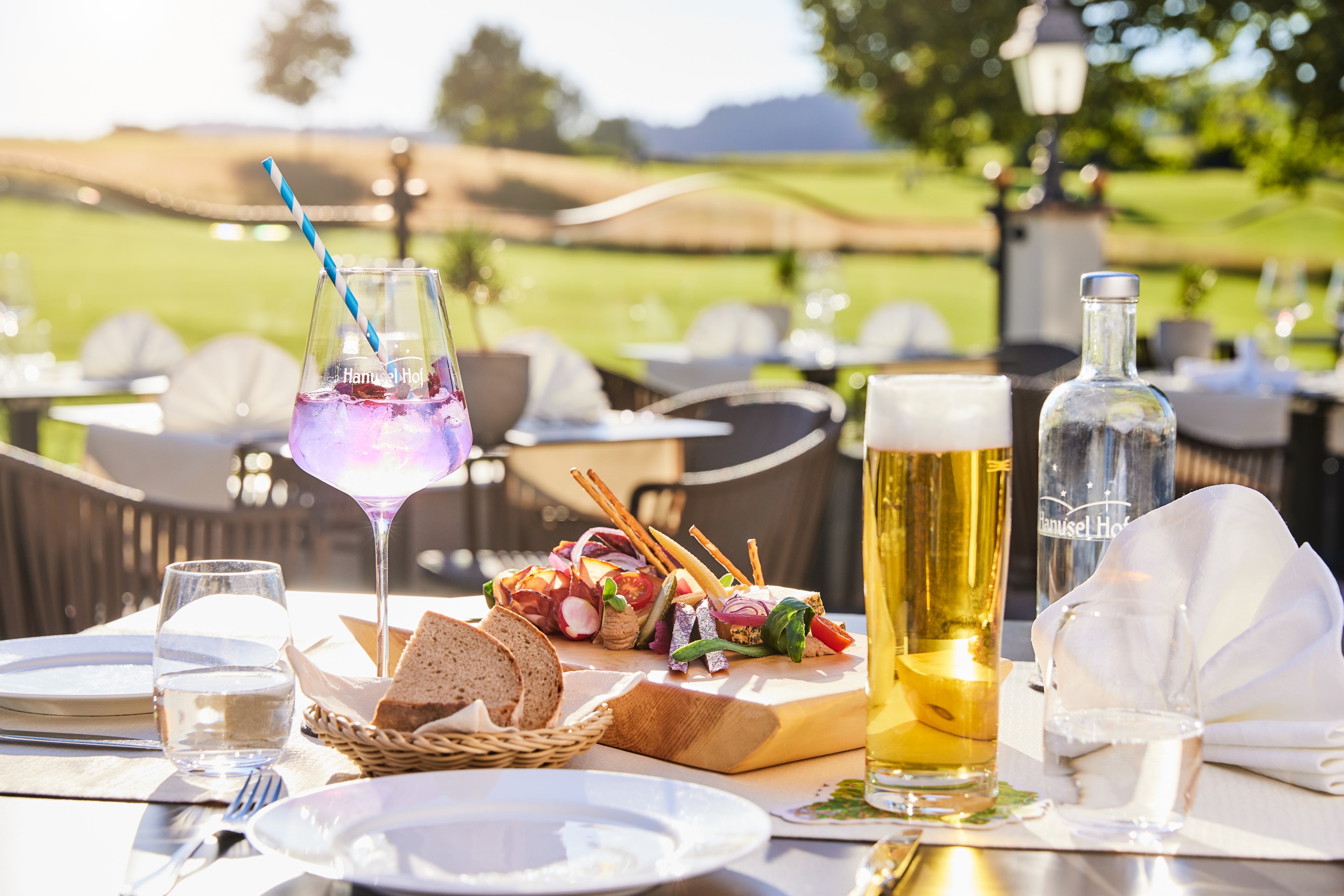 „Da summt und zwitschert es, dass es eine wahre Freude ist“, so Frank Rainalter. „Wir mähen die Wiesen um den Golfplatz nur zweimal im Jahr und düngen sie auch nicht, das sieht man der Natur rund um den Hanusel Hof an. Überhaupt ist die Natur in unserer Heimat noch sehr ursprünglich.“ Wer diese Ursprünglichkeit vom Hanusel Hof aus entdecken möchte, dem stehen alle Wege offen. Ob mit dem E-Bike von der hoteleigenen Verleihstation oder mit Wanderausrüstung: Die Möglichkeiten sind vielfältig und die Berge ein Genuss für bewegungsfreudige Gäste. Wer´s lieber gemütlich mag, spaziert zum nahegelegen, idyllischen Speckbach, und entdeckt dabei so manche seltene Pflanze am Wegesrand. Und nach dem Ausflug in die Allgäuer Bergwelt? Köstliches aus der Hanusel Hof Küche vom heimischen Wild bis zur selbstgeangelten Forelle von Wolfram Rainalter.