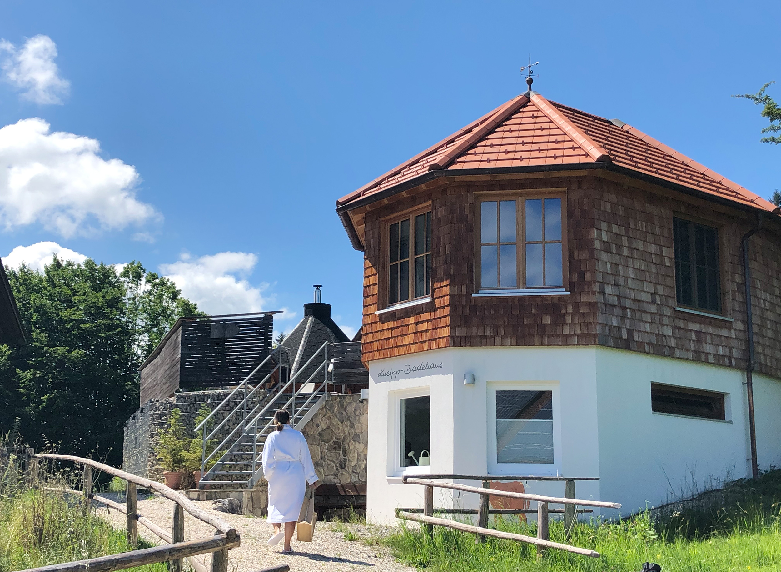 „Man sollte niemals mit kalten Füßen in die Sauna gehen. Das bedeutet Stress für den Körper“, erklärt Hotelchefin Heike Eggensberger den medizinischen Hintergrund. Ganz wichtig: die Füße im Fußbecken aus Fels vorher ein paar Minuten mit nicht allzu heißem Wasser aufwärmen. „Wie schon Kneipp empfahl, sollte man mäßig und regelmäßig saunieren. Oft sind zwei Sauna-Gänge pro Tag genug. Denn unser Körper braucht Zeit und Ruhe, um diese extremen Reize zu verarbeiten.“