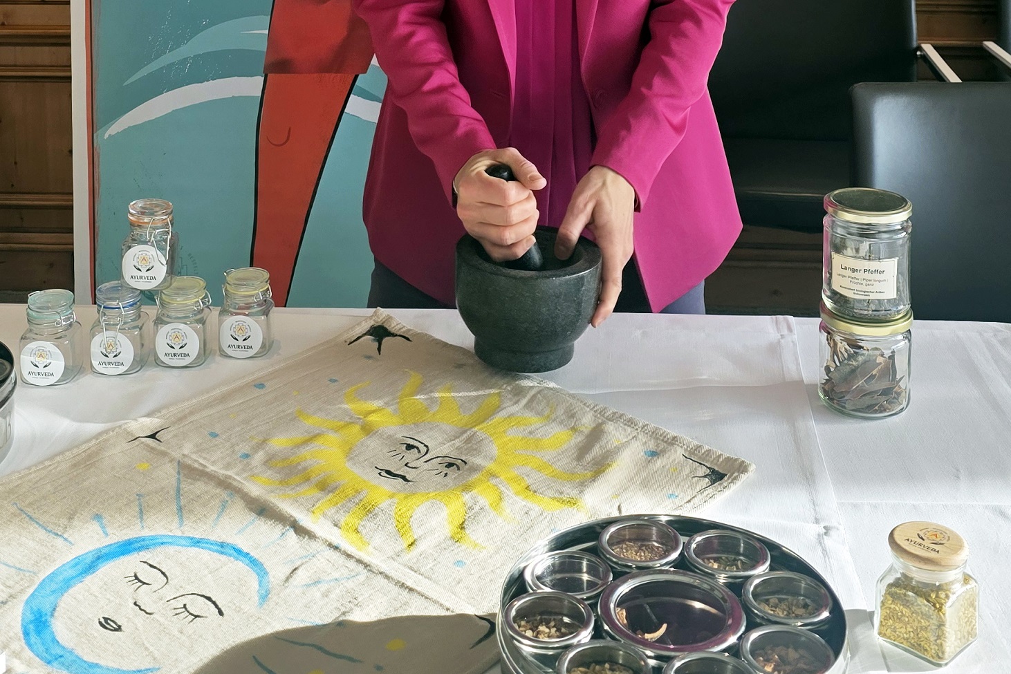 Regelmäßig mittwochs vermittelt Diplom Ayurveda-Spezialistin Sonja Hilsenbek in Vorträgen, Workshops und Pulsdiagnosen praxisnah das Wissen und die Philosophie des Ayurveda – den 5.000 Jahre alten Wissensschatz, live und unterhaltsam zurückgebracht in unsere moderne Lebenswelt.