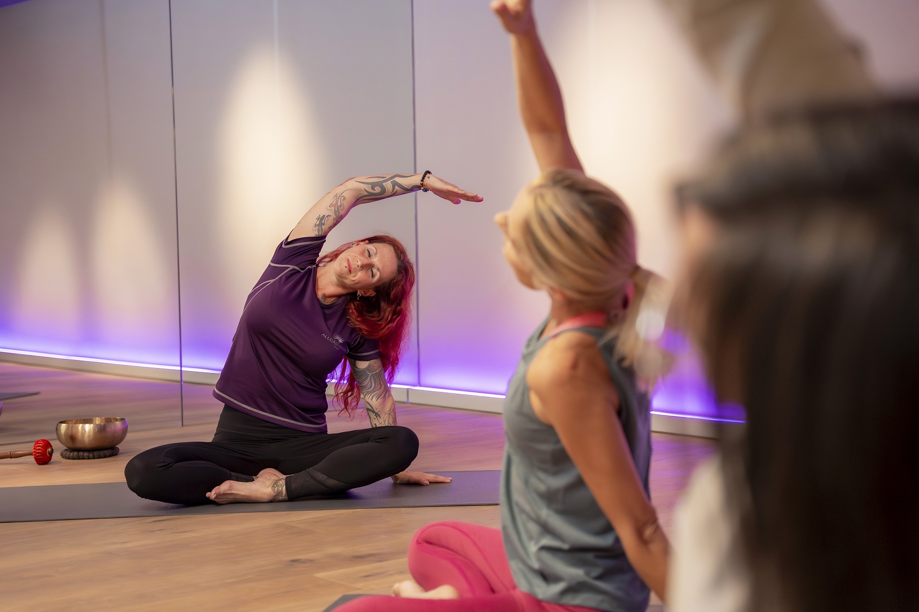 Ayurveda und Yoga haben nicht nur ihren Ursprung in Indien gemeinsam – sie ergänzen sich auch ideal. Während Ayurveda die Gesundheit durch ausgewogene Ernährung, Massagen und Reinigungsrituale unterstützt, strebt Yoga die Einheit von Körper und Geist an. Zwei hervorragend ausgebildete und erfahrene Sport- und Yoga-Lehrerinnen leiten die zahlreichen Kurse an. Im aktuellen Sportprogramm der Allgäu Sonne sehen Sie, welche Yogaeinheiten die Woche geboten werden.