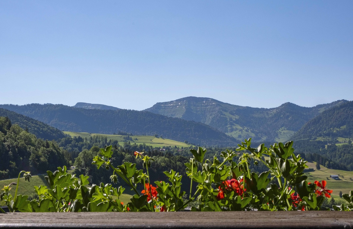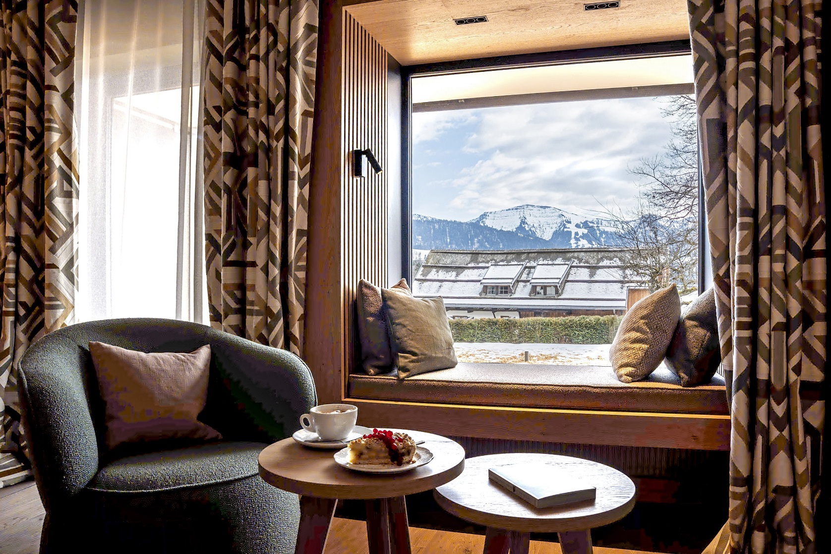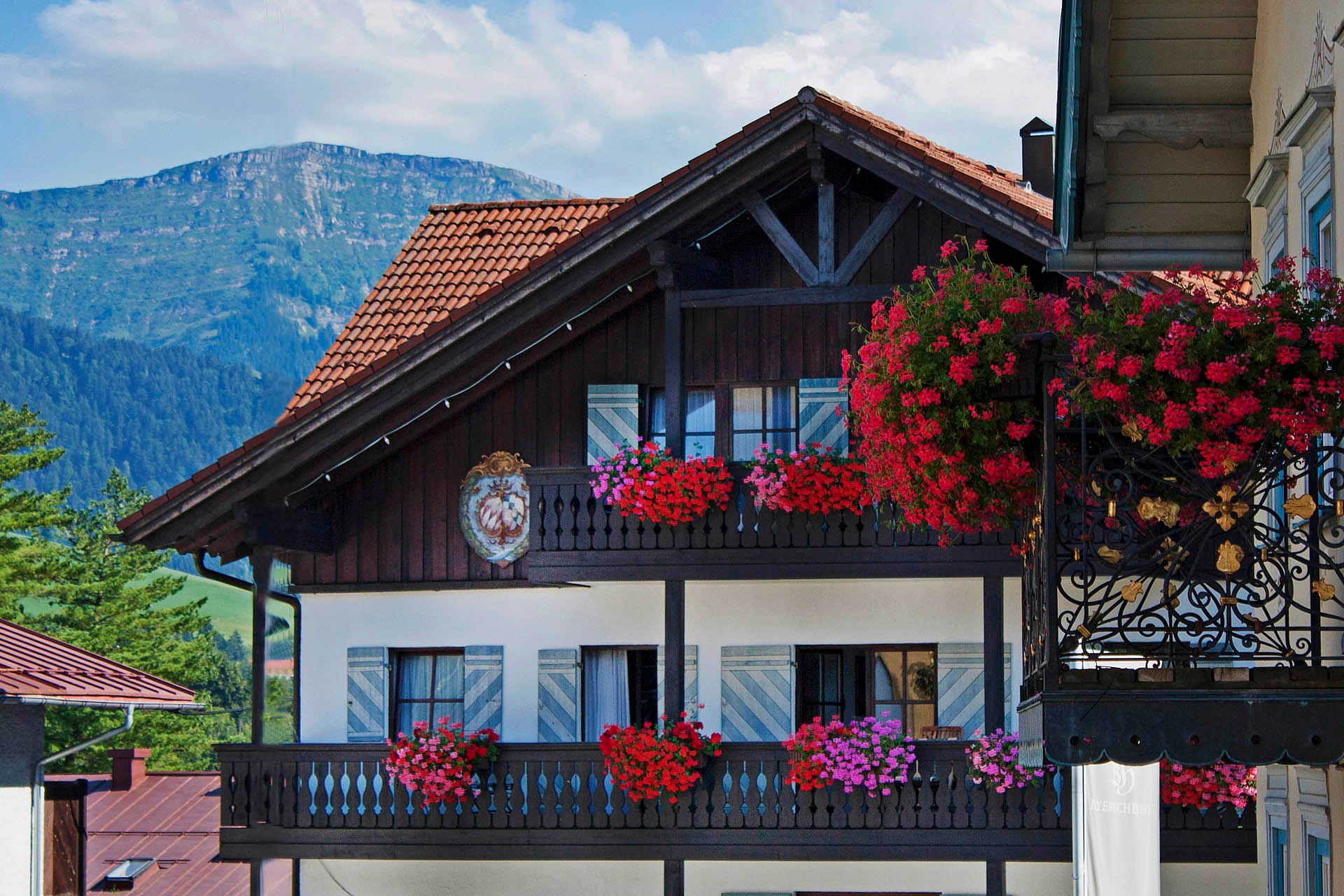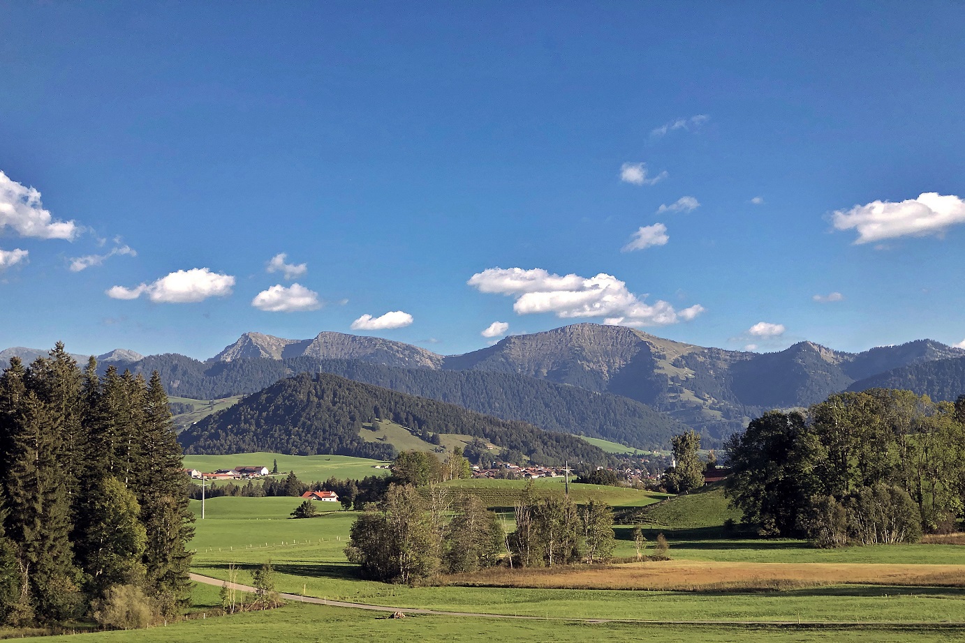 Auf der Vorderseite des Hauses, direkt an der Fußgängerzone, taucht man unmittelbar ins lebendige Ortsgeschehen ein: Geschäfte, Cafés und Restaurants sind nur wenige Schritte entfernt. Auf der Rückseite zeigt sich eine ganz andere Perspektive: Hier öffnet sich der Blick zur Nagelfluhkette und ins Tal der Weißach. Der Blick in die Allgäuer Landschaft auf der ortsabgewandten Seite bildet den Gegenpol – ruhig, offen und wohltuend.
