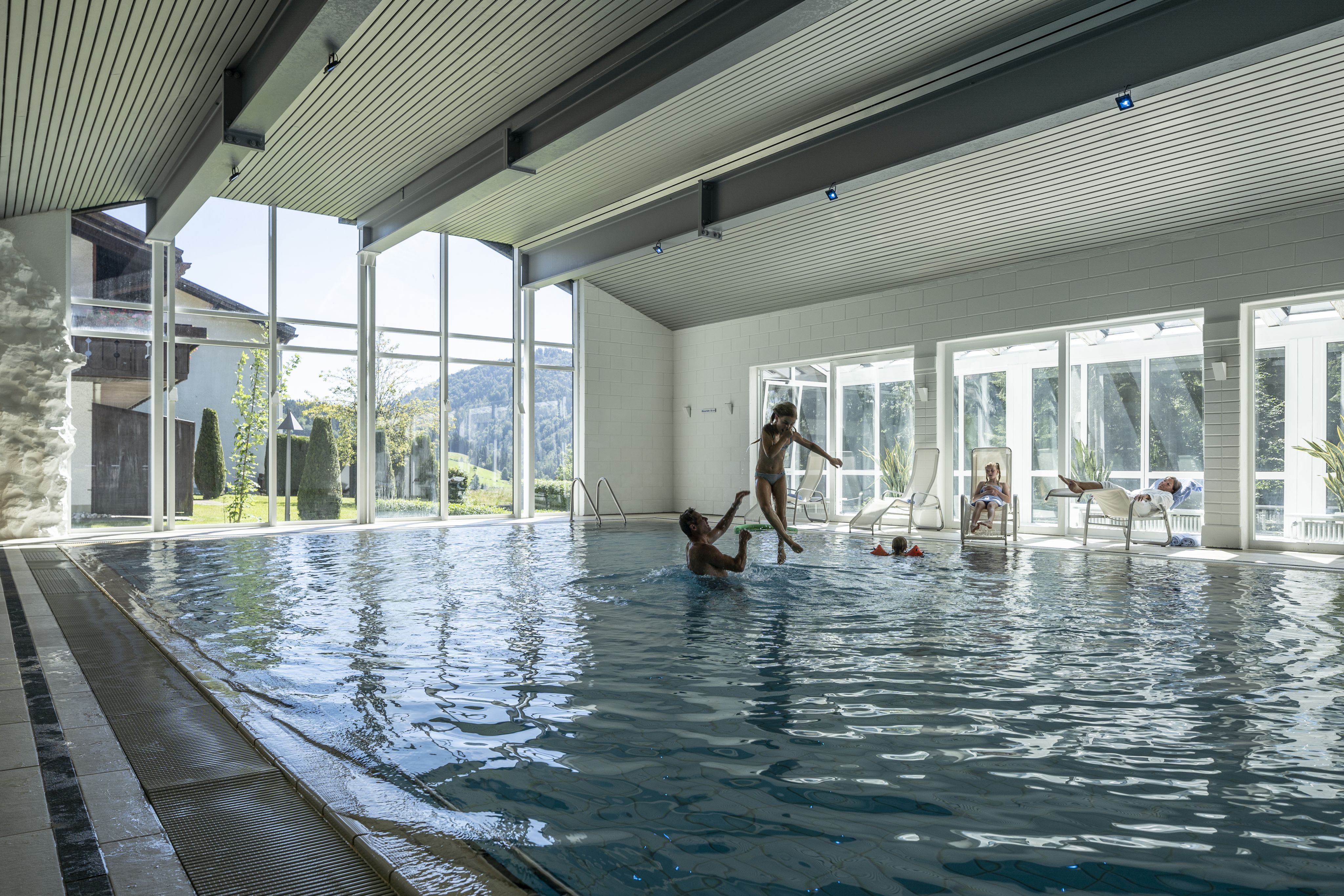 Das Motto der vier Hoteldirektorinnen lautet Fokus auf Familienglück. Und so setzen sie alles daran, die weitläufige Anlage so zu gestalten, dass sich hier alle Generationen zusammen wohlfühlen. Überall gibt es Angebote für aktive Paare und Freundesgruppen wie für Familien mit Babys und Kindern. Ob im Wellnessbereich mit großem Hallenbad, Whirlpool, Saunen, Dampfbad, Infrarotkabine und Ruheraum, oder bei den Freizeitangeboten, die vom E-Biken, Tennis, Wandern, Klettern, Babyschwimmen, Riesensandkiste, Walderlebnisplatz, Trampolinen, Fuhrpark und Yoga im Sommer bis zum Skifahren, Winterwandern, Rodeln, Langlaufen und Floaten im Winter reichen. Das Besondere? Das MONDI Resort Oberstaufen ist kein gewöhnliches Kinderhotel. Hier werden Freiraum und Individualität großgeschrieben. Jeder kann so in seinen Urlaubstag hineinleben, wie es ihm gefällt. Und das übrigens auch im kulinarischen Bereich. Denn statt Halbpension können sich Gäste hier entweder in den eigenen Küchenzeilen mit Kühlschrank selbstverpflegen oder das vielseitige Frühstücksbuffet im Restaurant MONDIs Staufenküche buchen. Ab mittags gibt es hier leckere Snacks und abends klassische Allgäuer à la carte Gerichte. Probieren Sie es aus, dieses Urlaubsgefühl werden Sie lieben. Besonders, wenn Sie mit Kindern, Eltern, Freunden oder Verwandten und gerne auch mit Hund verreisen. Denn hier finden alle ihr Glück.