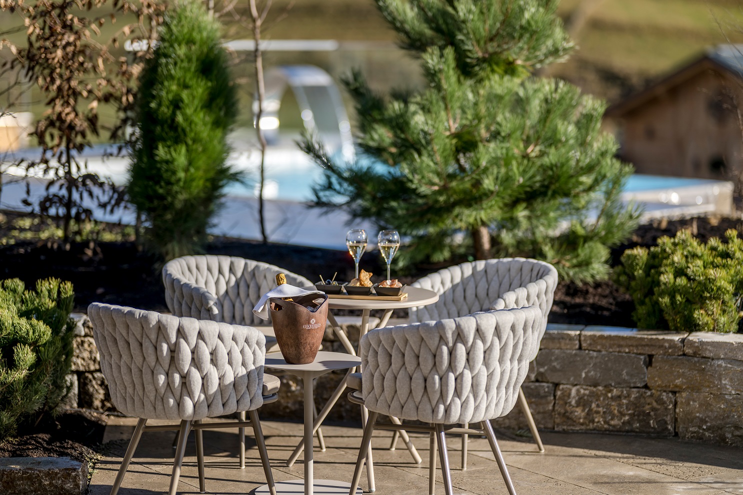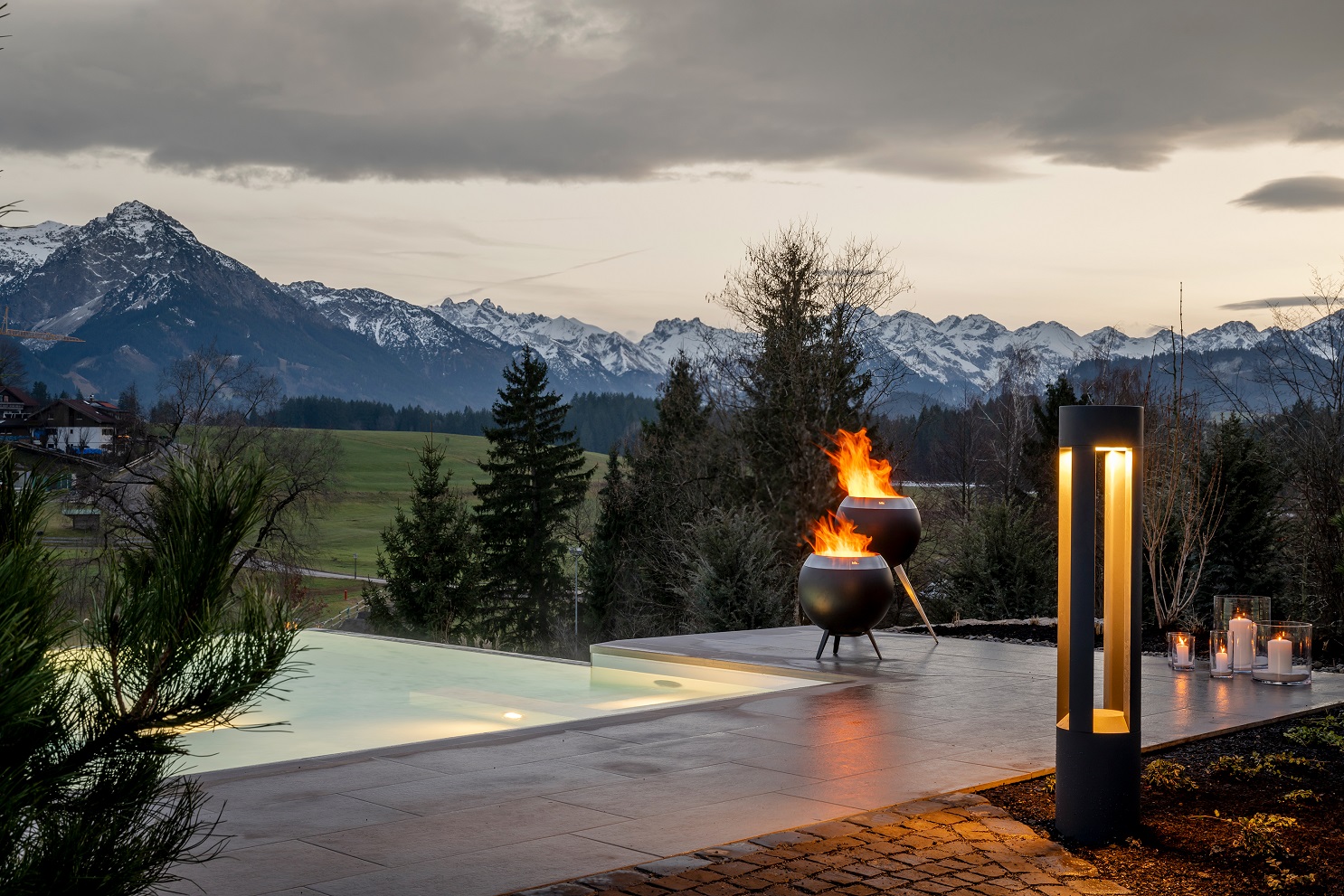 Nur wenige Schritte oberhalb des Resorts liegen die fünf NaturLodges, wie kleine runde Refugien am sonnigen Südhang. Komplett aus Holz gefertigt und mit großzügiger 180-Grad-Panoramaverglasung holen sie das Allgäu direkt in ihren Wohnbereich. Hier beginnt der Tag barfuß auf der Terrasse, endet in der Natur-Sauna oder im warmen Relax-Pool – und dazwischen liegt nichts als Ruhe, Geborgenheit und viel Raum zum Durchatmen. Die NaturLodge Deluxe wird zum Hideaway für Zwei, während die NaturLodge Premium Familien ein großzügiges harmonisches Zuhause auf Zeit schenkt. Wer hier wohnt, lebt bewusst langsamer – und spürt die Natur intensiver als je zuvor.