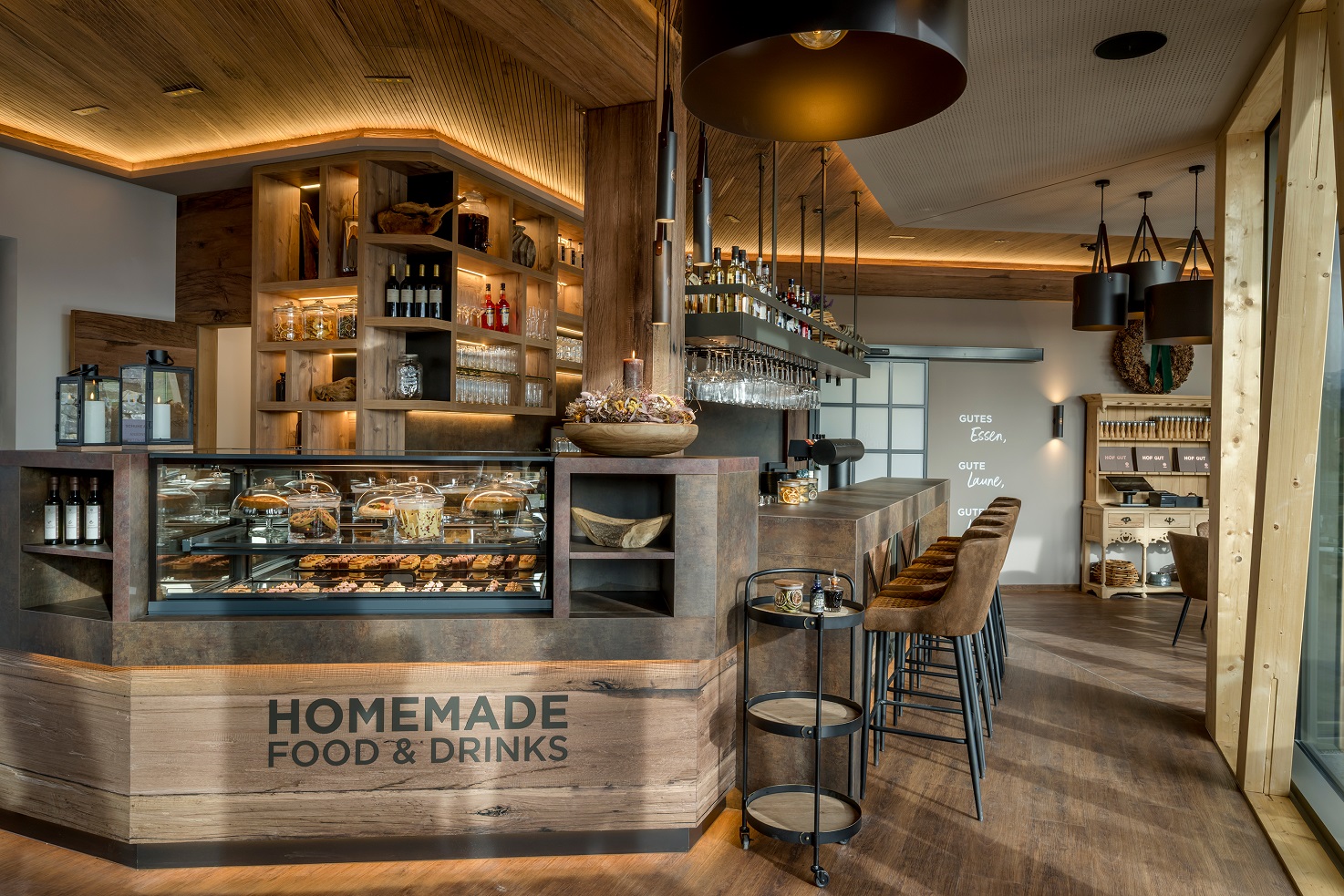 Während die Kids bereits früh morgens beim Reitunterricht Schritt oder Trab üben oder sich im neuen Streichelzoo mit den süßen Alpakas anfreunden, genießen Mama und Papa im Hofgut-Restaurant oben am Dach der Reithalle Kaffee-Spezialitäten und ofenfrisches Gebäck. Von mittags bis abends begeistert das Hofgut-Restaurant mit Soulfood à la carte aus der offenen Showküche und serviert Gerichte mit regionalen Wurzeln und internationalen Einflüssen wie Burger, Sandwiches oder verschiedene Vorspeisen zum Teilen. Dank des flexiblen Dine-Around-Konzepts der Sonnenalp können Gäste im Rahmen der Halbpension in allen Restaurants des Resorts essen. In der warmen Jahreszeit wird die große Sonnenterrasse mit Panoramabergblick am Hofgut the place to be. Wau-Moment für alle Hundebesitzer: Auch vierbeinige Gäste sind herzlich willkommen.
