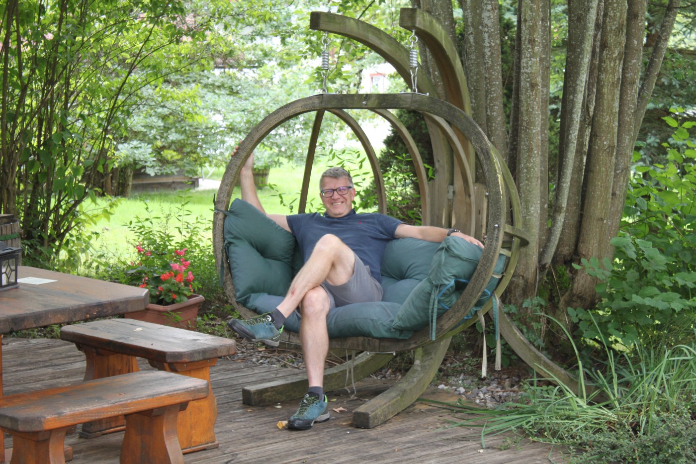 Die Reindls sind Quereinsteiger. Baubranche, Finanzwelt, ständig unter Strom, dauernd unterwegs. Das ist die eine Seite, aber auch als Weltenbummler war Andy schon unterwegs - mit Gitarre und VW-Bus. Die Sache mit dem Hotel haben die Beiden sich gut überlegt und lange nach dem richtigen Objekt gesucht. Aber als sie den Mühlenhof in Oberstaufen entdeckten war es klar: DAS machen wir!