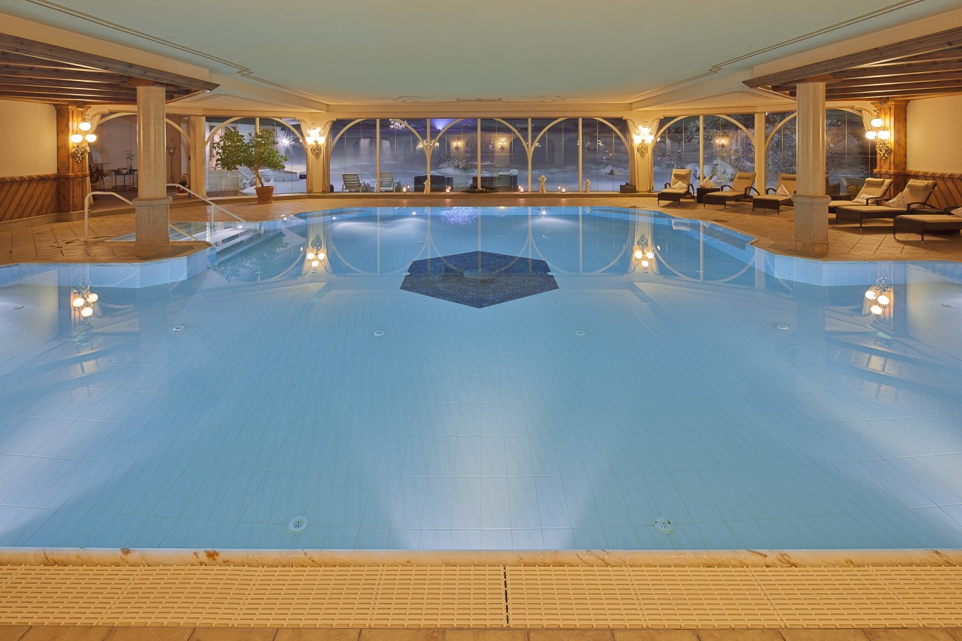 Dieser Effekt lässt sich in dem frei stehenden Vier-Sterne-Superior Hotel mit der außergewöhnlichen Lage an vielen Stellen gut beobachten: auf dem Golfplatz, in den Loipen, auf der Terrasse mit fantastischem Bergblick. Im ganzen Haus haben die Gäste reichlich Raum für echte Entspannung.