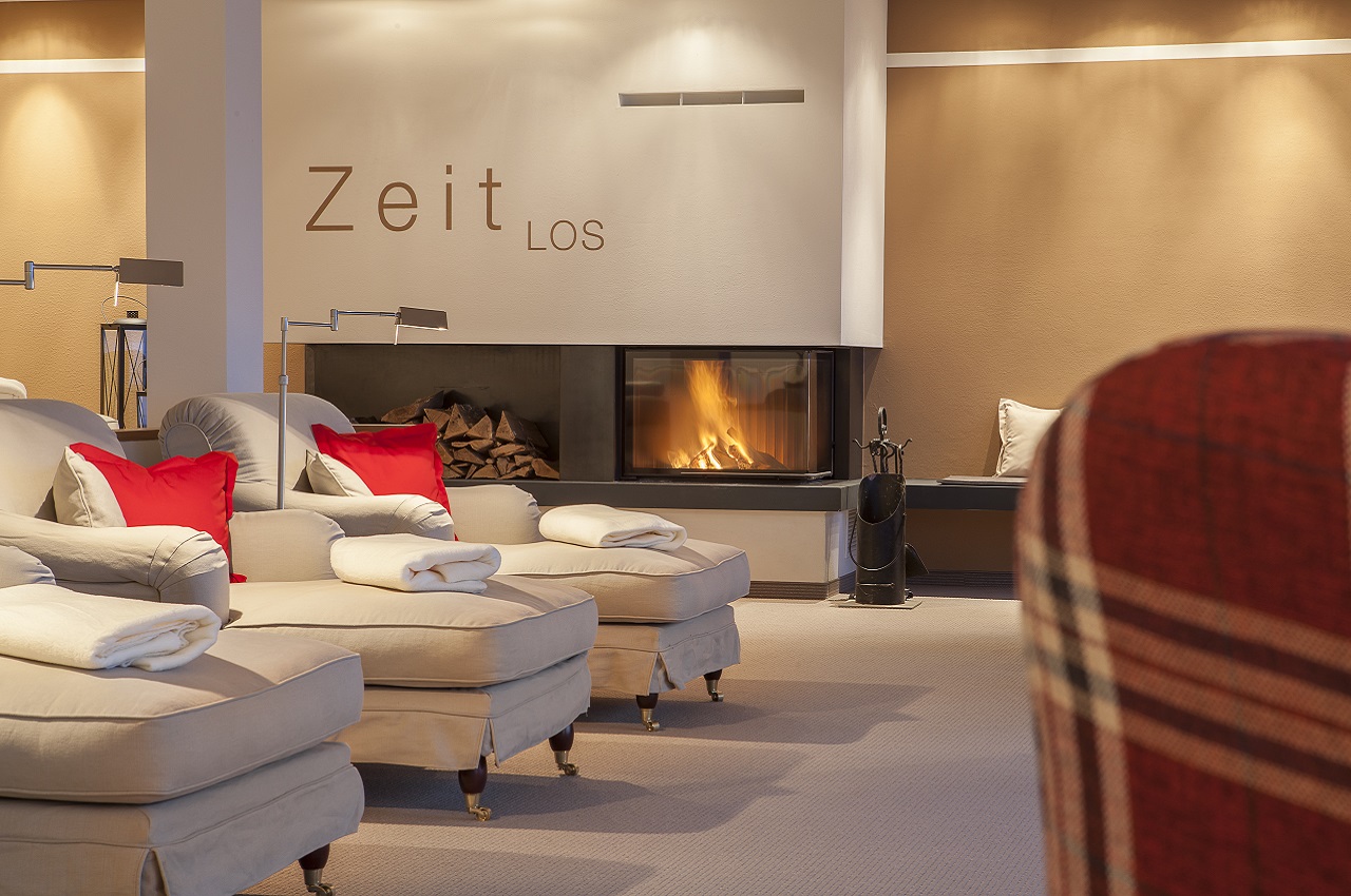 Entweder im 12.000 Quadratmeter großen Garten mit Teich und Spazierweg oder in der „Zeitlos“ Lounge. Ein Raum, wie ein stilvolles Wohnzimmer: ohne Mobilfunk und ohne WLAN dafür mit weichen Liegen, kuscheligen Decken und einem knisternden Kaminfeuer.