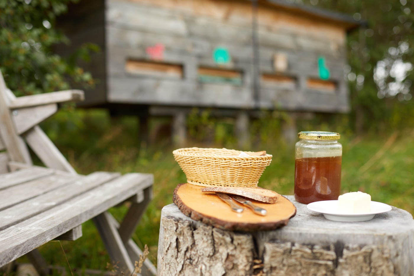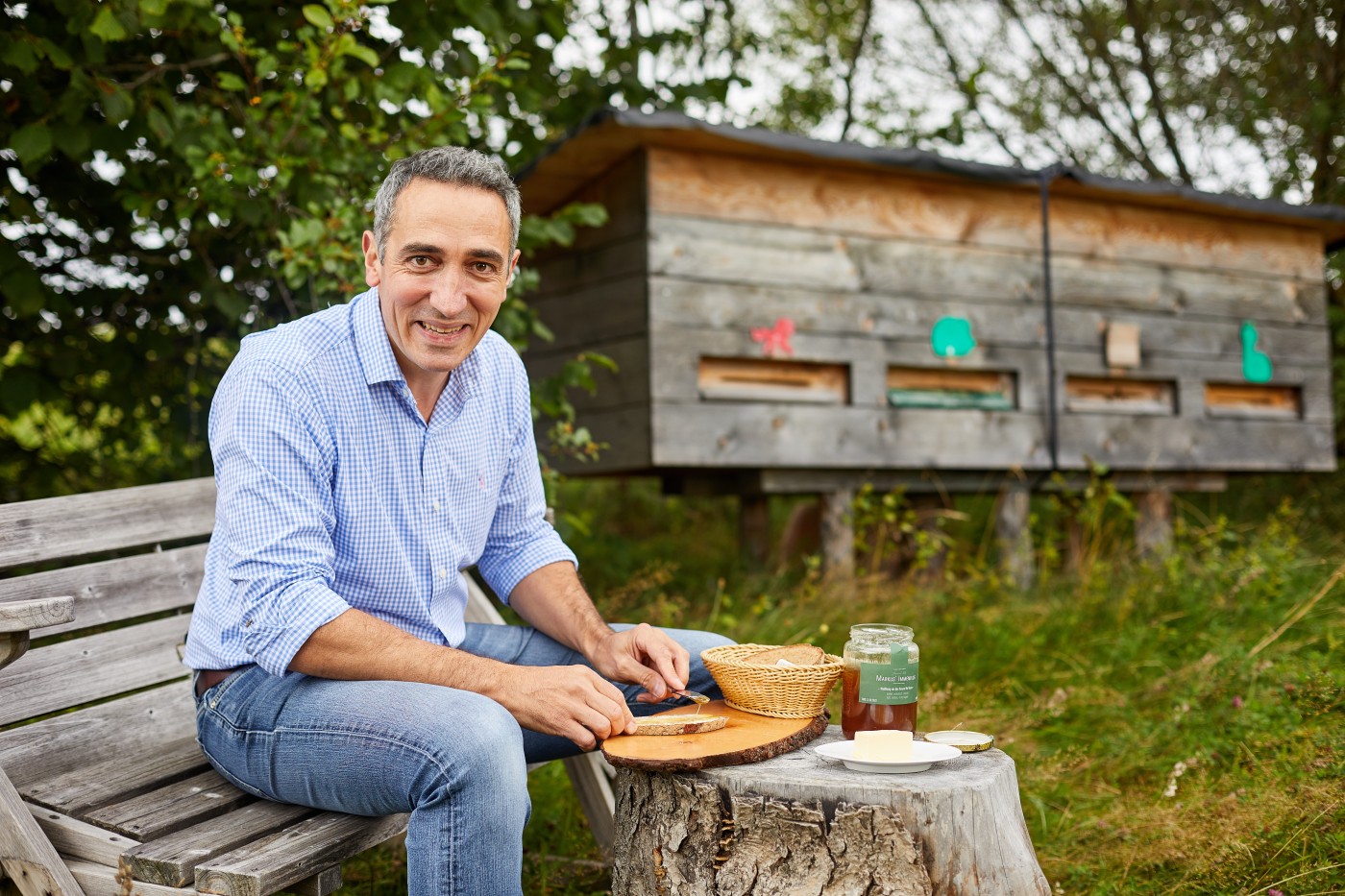 Mein Fisch zum Beispiel war gestern noch beim Golf. Also auf dem Golfplatz, denn der Forellenteich liegt idyllisch zwischen den saftig grünen Abschlagsflächen der hauseigenen 18-Loch-Anlage vor dem herrlichen Bergpanorama der Allgäuer Alpen. Bei der Besichtigung kommen wir auf dem Weg zum Fischweiher an den Bienenstöcken des Wellness-Hotels vorbei. Hier bauen sieben Völker die Waben, auf denen sich das frische Filet später in ein butterzartes Gericht mit leicht süßlichem Aroma verwandeln soll.