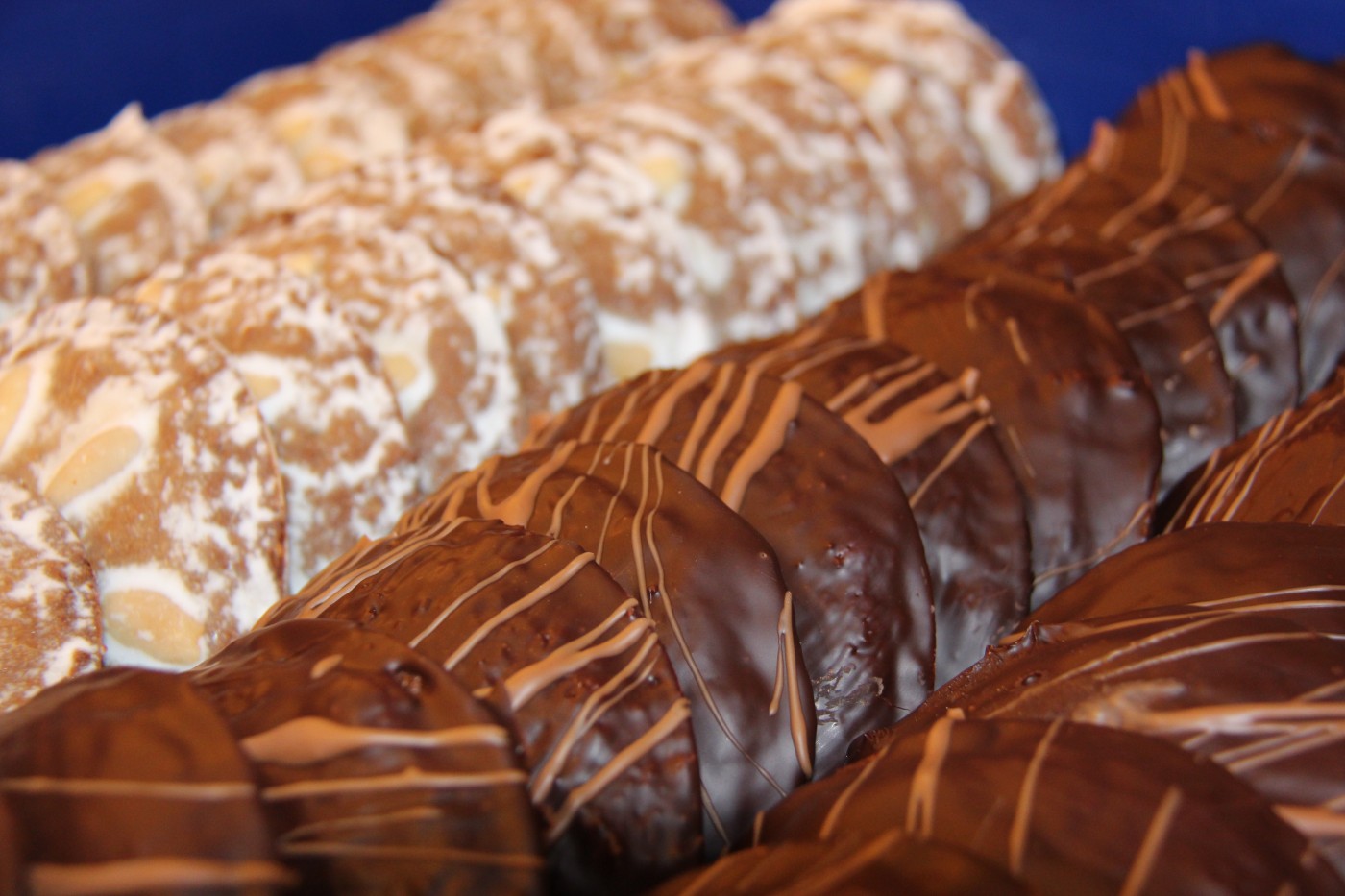 Die Konditoren-Kollegen lächeln. „Möchten Sie probieren?“ Was für eine Frage. Beim Aufschneiden zeigt sich die wahre Qualität der Elisen-Lebkuchen nach hauseigenem Rezept. Der Teig: locker und saftig. Die Schokoladenschicht: hauchdünn. Die Oblate: nicht zu sehen, von oben ganz bedeckt. Im Mund zergeht jeder Biss ohne grobe Stücke fast wie pure Schokolade. Ein Gedicht. „Das kann ich immer essen“, sagt Norbert Schöll und lächelt.