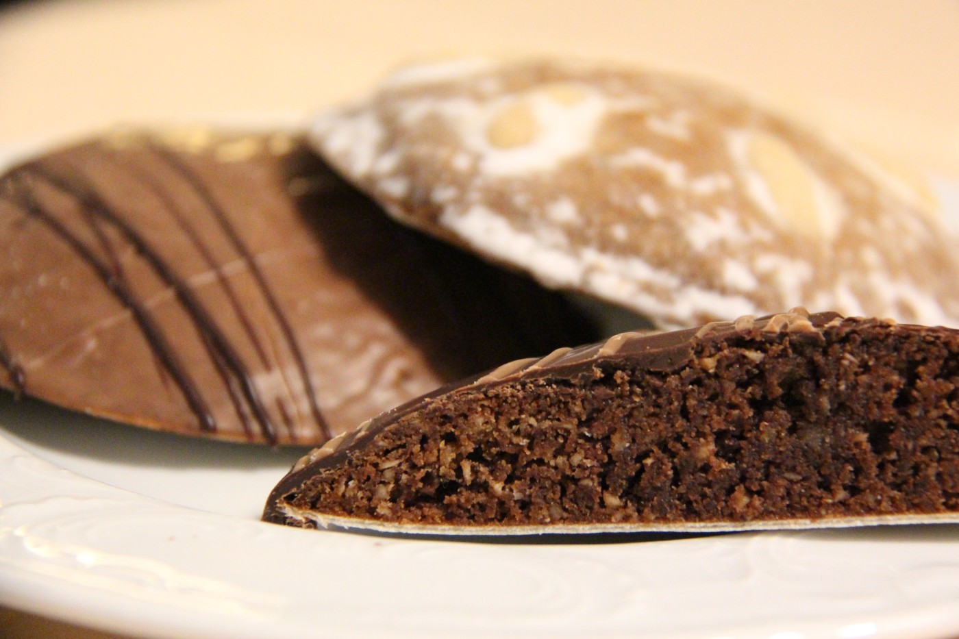 „Mein Lieblingsdessert sind Lebkuchen“, sagt Norbert Schöll. Lebkuchen? Ich schiele unauffällig zu den prächtigen Sahnetorten. Echt jetzt? Da kommt der Chef der Konditorei mit einer großen Box aus der Küche ums Eck. „Ganz frisch“, verspricht er und öffnet den Deckel. Ein überwältigender Duft von Marzipan und Kardamom steigt auf. Würzig, kräftig und irgendwo dazwischen eine zarte Note von Kakao. Oder besser: Von gerade eben noch flüssiger Schokolade. Bauch an Rücken lehnen die kreisrunden Köstlichkeiten aneinander.