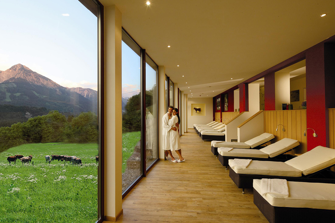 30 Minuten und eine warme Dusche später ist meine Haut samtweich, ich bin tatsächlich entspannt. „Ein perfekter Anfang für einen Aufenthalt“, sagt Eberhard Husel und empfiehlt mir noch einen Moment auf einer Liege auf der Sonnenterrasse mit dem sagenhaften Berg-Blick. Ich folge seinem Rat und stelle fest: Der Mann hat recht. Entspannter kann ein Urlaub wirklich nicht beginnen.