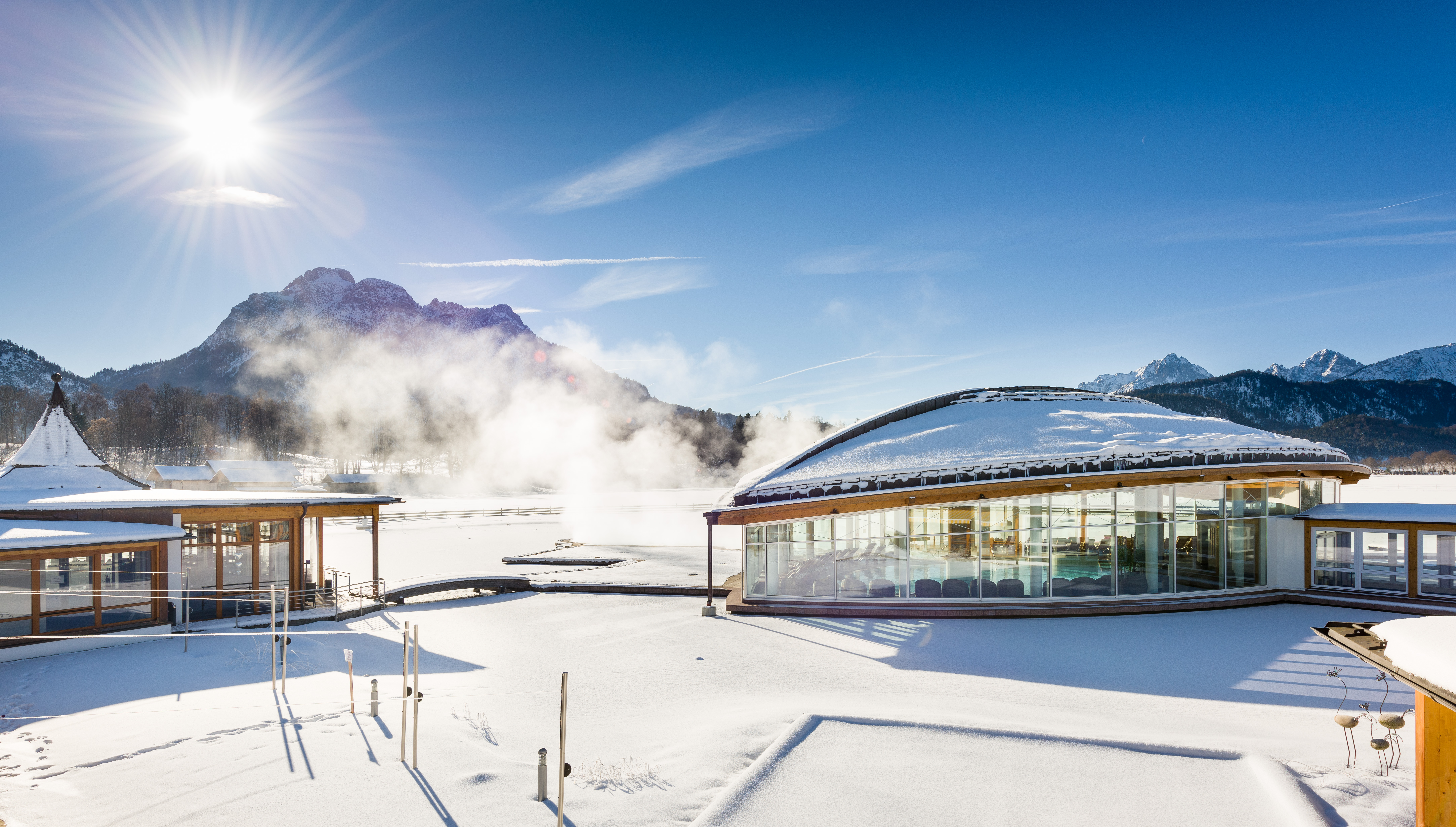 Was gibt es Romantischeres als den Winter? Den Winter im Ostallgäu! Wenn die schneeweiße Decke alles Kantige rundet und alles Hektische beruhigt, dann erleben die Gäste des familiengeführten 4-Sterne-Superior-Hotels Romantik in Reinform. Vor der grandiosen Bergkulisse von Säuling, Tegelberg & Co. taucht man dann ein in ein wahrhaft königliches Wellness-Erlebnis. Auch hier ist der Name Programm: Die fast 7.000 Quadratmeter große Wohlfühloase heißt „Ludwig Spa“. Sonnenklar: Genauso hätte der König entspannt!