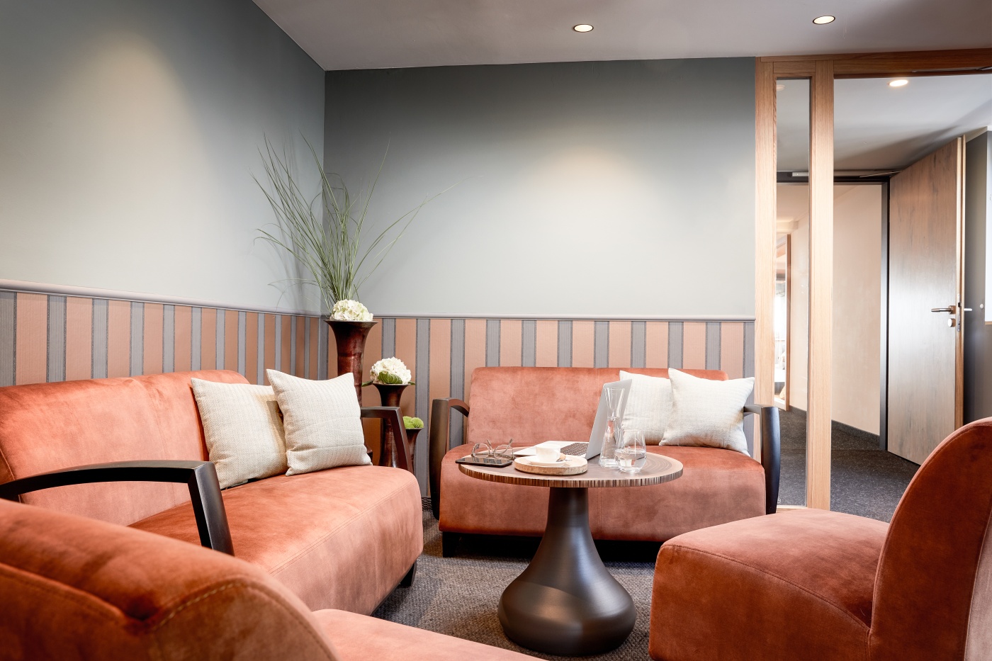Viele sitzen gerne auf der Terrasse oder auf der großen Couch in der Hotel-Lobby und arbeiten dort. Wer an einem Meeting teilnimmt, kann sich in die mit einer Glaswand abgetrennte Lounge zurückziehen.