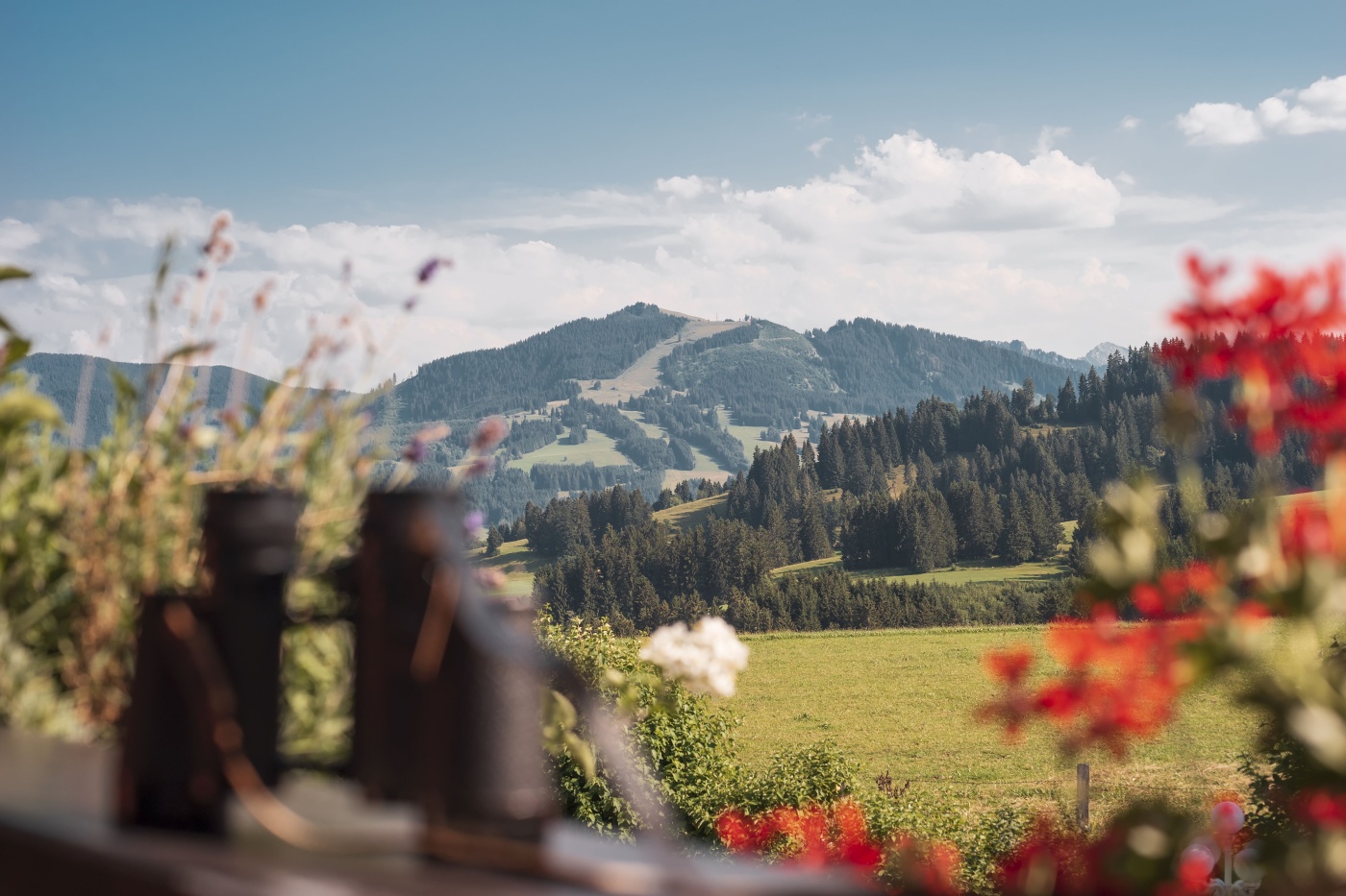 Vor uns erstreckt sich lautlos eine atemberaubende Idylle. Wälder, Felder, sattes Grün: „Bei uns kann man sich auf das, was wirklich wichtig ist, konzentrieren“, erzählt Thomas Mayr von der Hotelfamilie von Gästen, die extra hierherkommen, um sich auf ein Projekt zu fokussieren und Gedanken freien Lauf zu lassen.