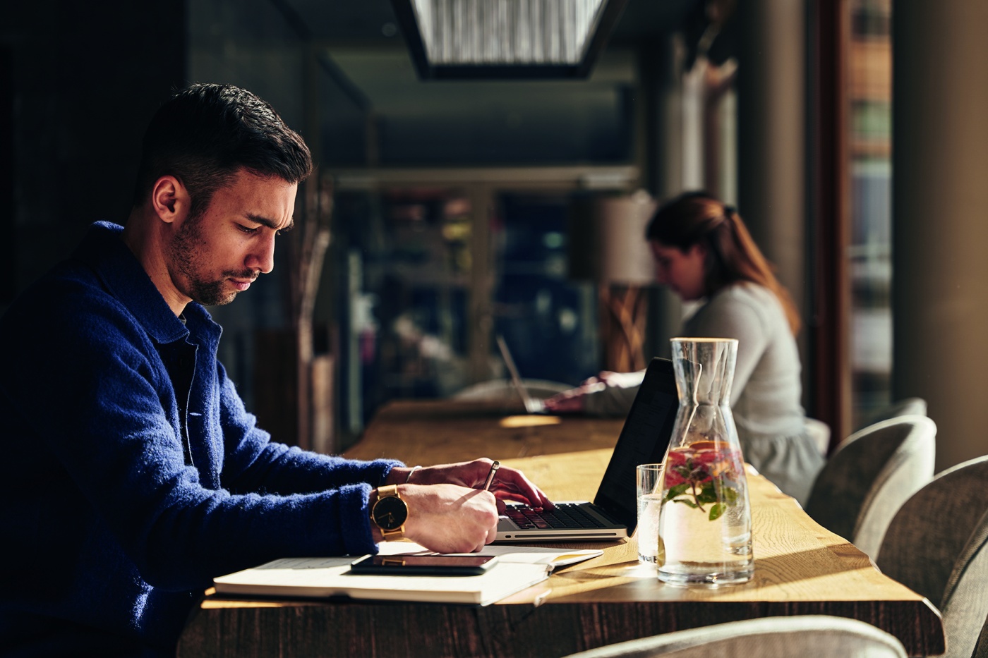 „Ich bin selbst überrascht, wie erfolgreich das ist“, sagt Marc Traubel und schließt die Tür zu einem höchst ungewöhnlichen Raum für ein alpines Wellnesshotel auf: einem nagelneuen Coworking-Space. Davor: Echte Birkenstämme bis zur Decke. In der Wand: ein bodentiefes Glasfenster. Innen: ein stilvoll-gemütliches Interieur und ein großer Tisch aus Sauna-Holz.